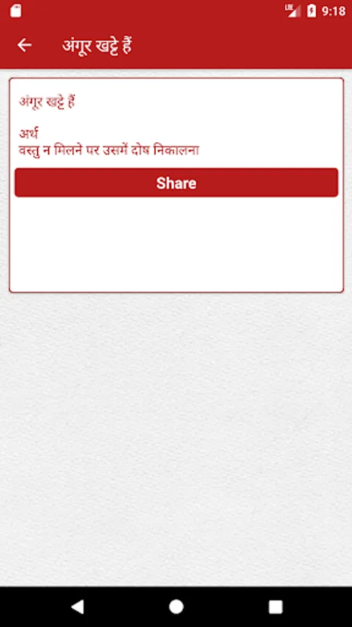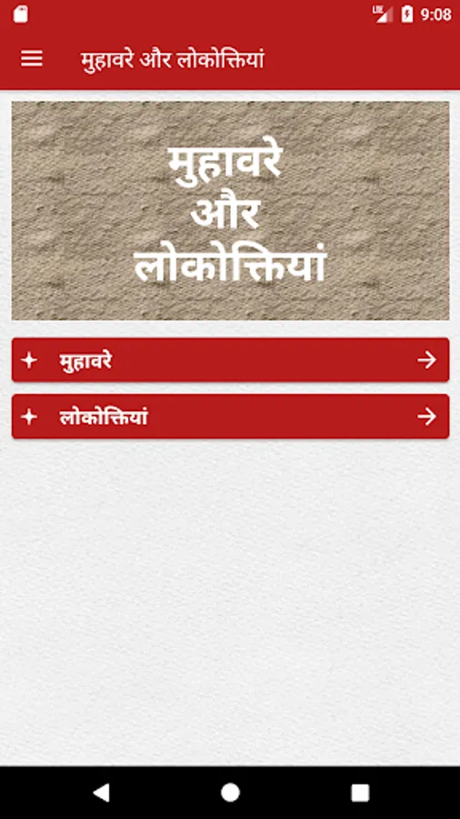 This application contains Hindi Proverbs (लोकोक्तियाँ, Lokoktiyan) and Idiom (Muhavare, मुहावरे).