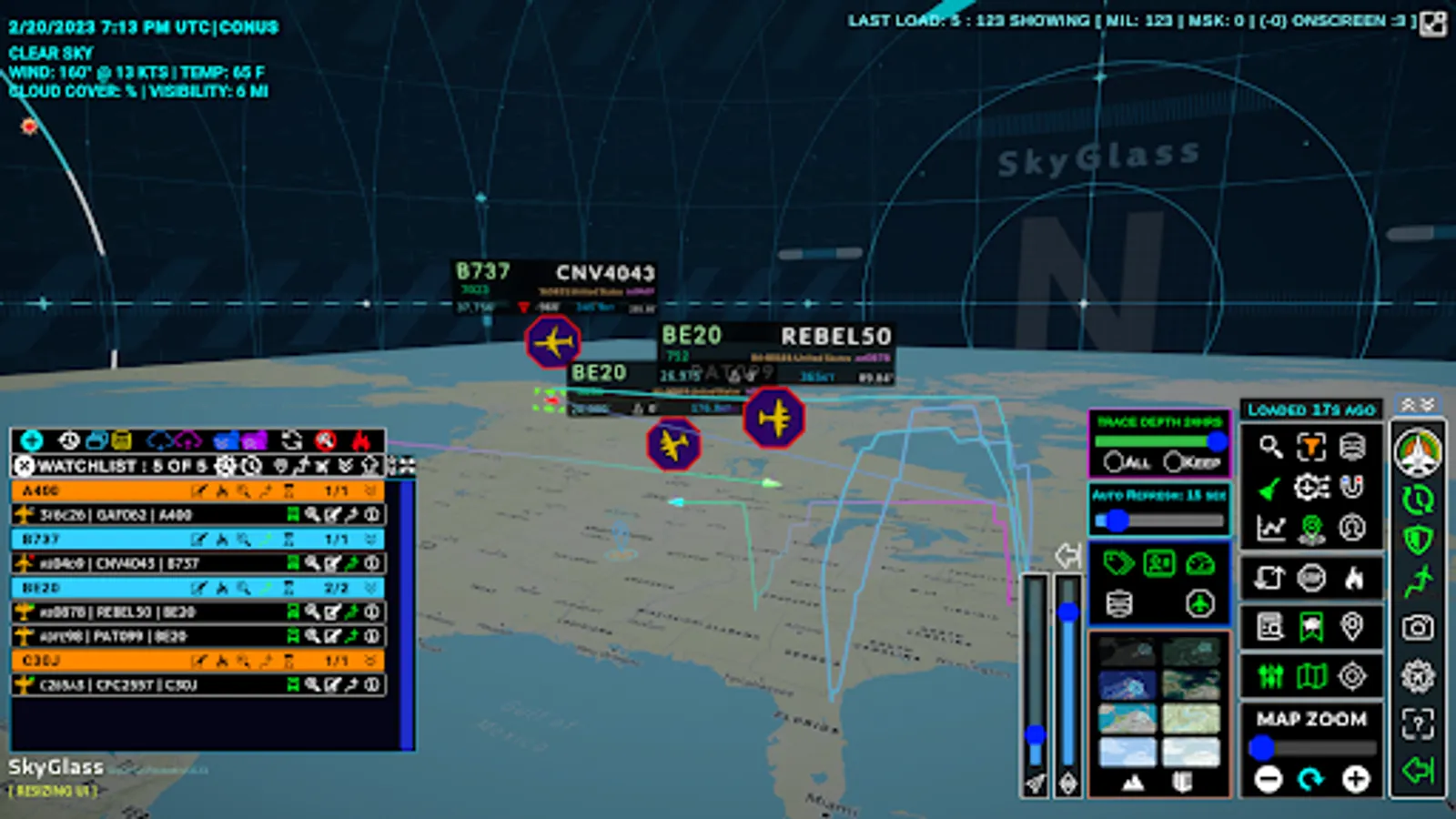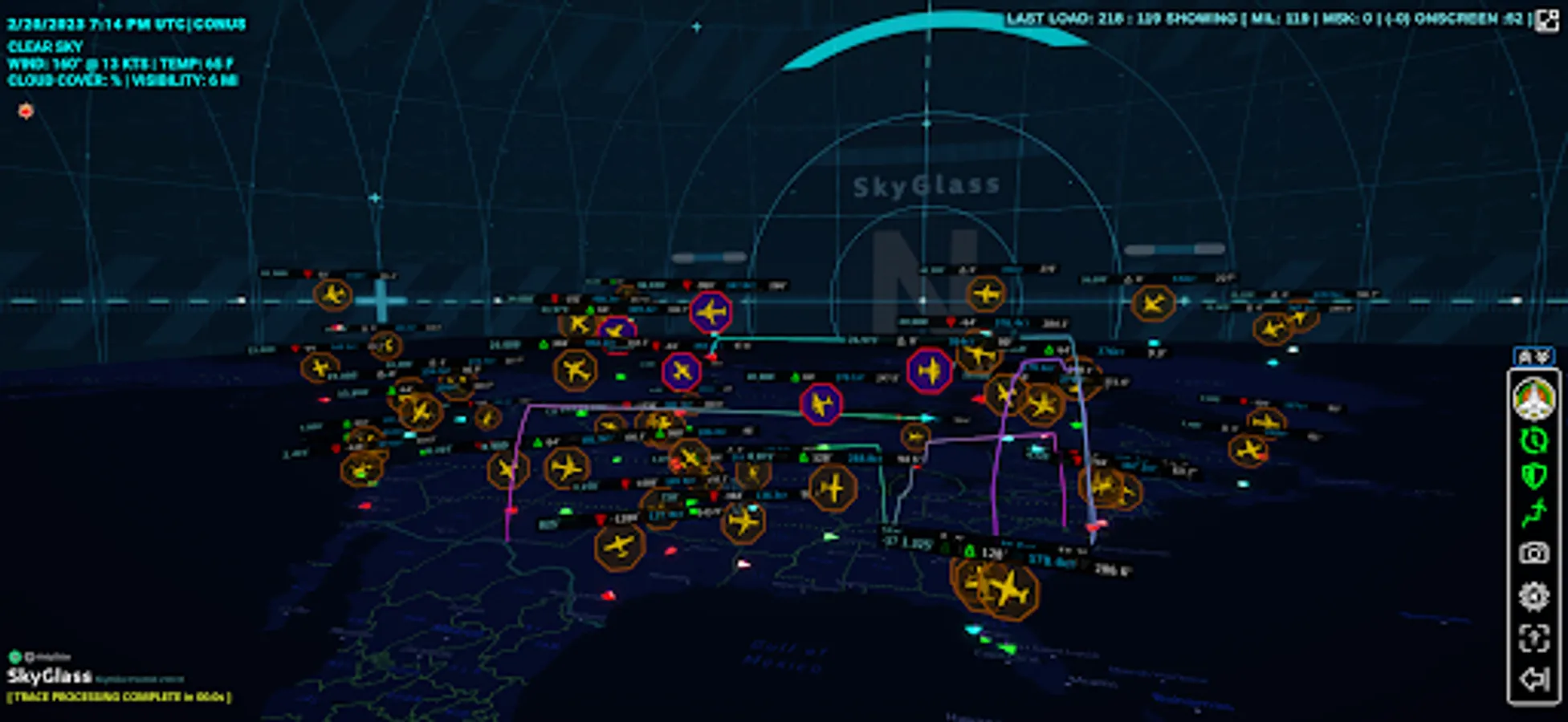 • View 3D flight traces with variable trace depth and custom colors