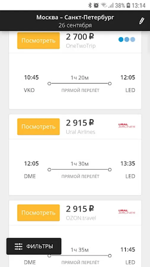 The application has an intuitive interface. The whole process of searching and buying air tickets does not take much time.