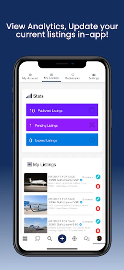 - Add listings - no need to add an aircraft from our website. Submit all the needed information from the app.