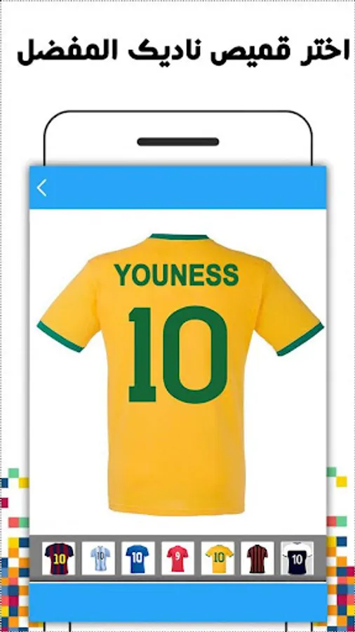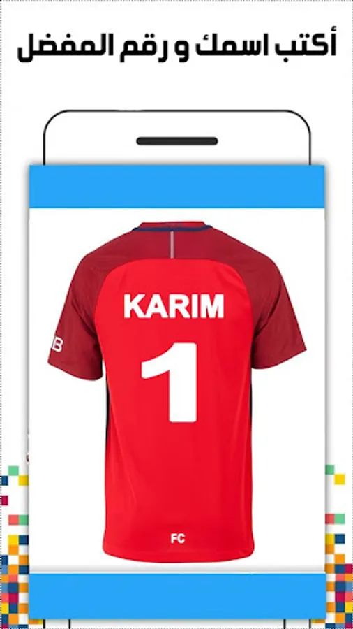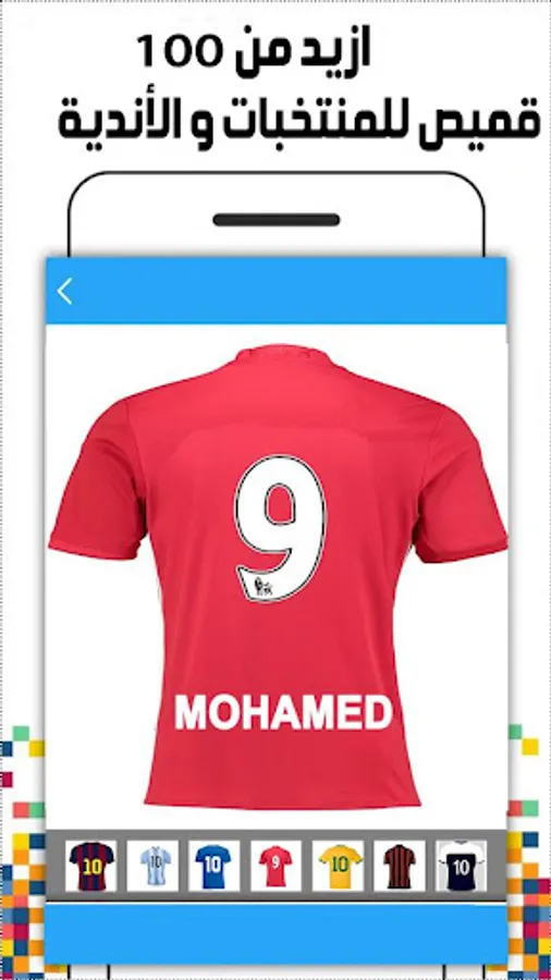 When you open the application, your name on the shirt of your favorite team will appear in front of you several shirts, including the shirts of foreign teams and Arab teams