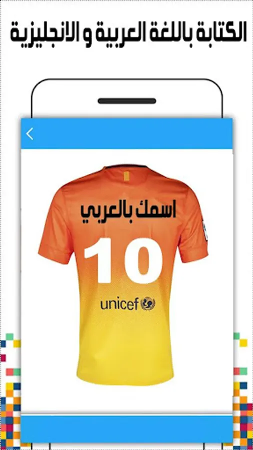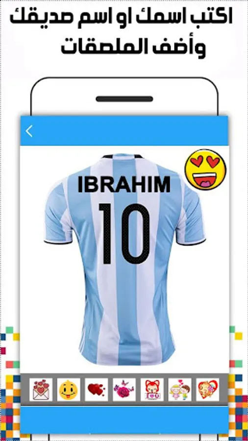 Good news for every football fanatic. Applying your name on the soccer shirt has become available to all Android users, now you can write your name and the name of your sweetheart on the shirt of your favorite football team quite easily and without effort. From designing soccer soccer clothes, and if you are a fan of world football or Arab football and want to encourage your favorite soccer team in matches directly, or you want to design a soccer jersey for your favorite star and encourage your star in soccer.