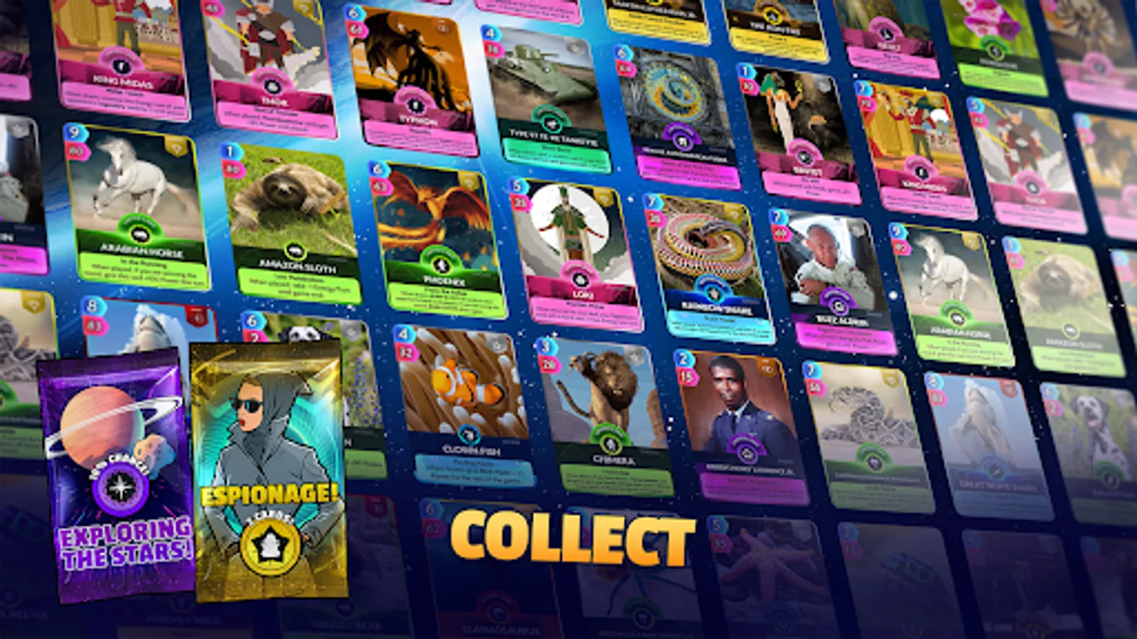 CUE is a totally unique trading card game. Collect and trade to build the ultimate battle decks with almost limitless things: Bears, Dinosaurs, Nebulae, Zeus, Houdini, Samurai, Pika, the Sun, legend Isaac Newton, Volcanoes, Kings & Queens, Calculus and so much more! Collect cards with historical characters, animals and objects from our reality!
