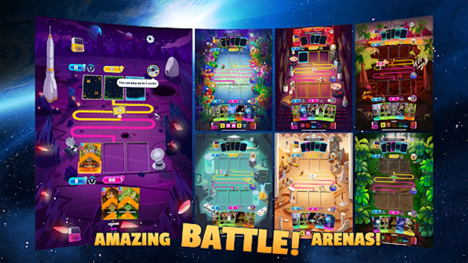 Collect and battle cards with unique abilities, then level up decks with new cards and duel against players from around the world in CUE’s iconic arenas! Battle decks in Space, History, Life on Land, Palaeontology and Science levels. Use RPG strategy to prove your card deck is the best.