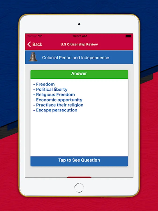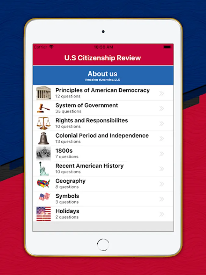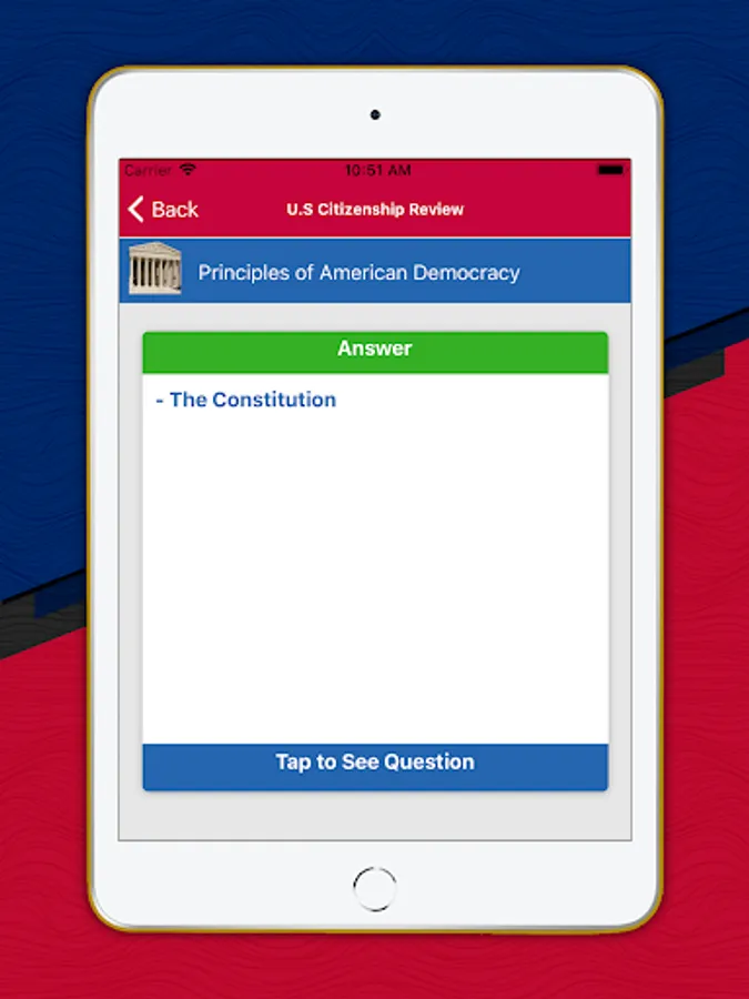 This app contains 100 Test Questions and Answers for US Citizenship.