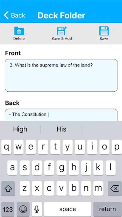 2. Create a new flash card with a single click, edit and save. You will soon be on your way to learn your own words or any moments.