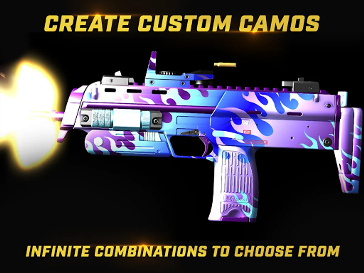 • Make each gun genuinely unique with a mobile-optimized, touch-friendly painting system with customizable colors, patterns and version slots that allow for unlimited designs. Create a realistic or creative pattern; it is your choice.
