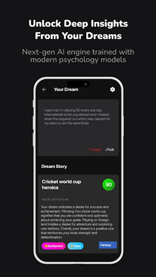 Our AI engine uses established dream theories, symbols, and Freudian theories to provide personalised dream interpretations that can reveal insights into your subconscious mind.