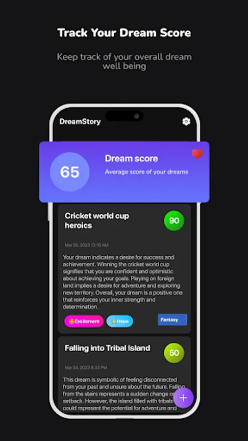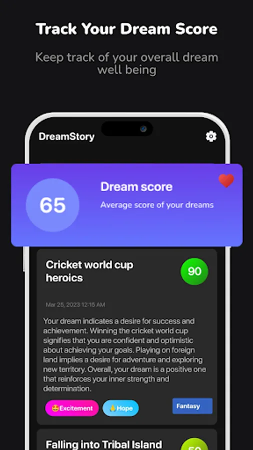 Using the our scoring algorithm track your progress over time and see how your dreams affect your overall well-being.