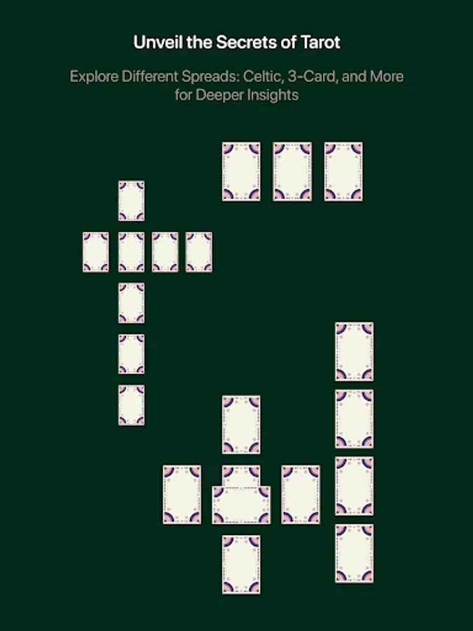 🃏 Shuffle the cards and embark on a transformative experience. Choose from a variety of spreads, including the renowned Celtic spread and the insightful 3-card spread, to receive profound insights into different aspects of your life. Our user-friendly interface allows you to effortlessly navigate through the spreads, making it accessible to everyone.
