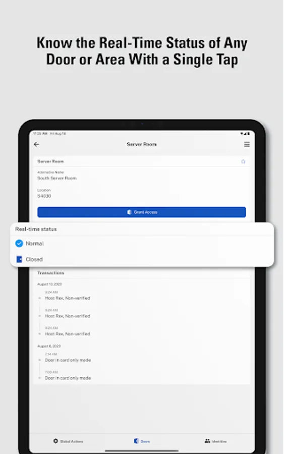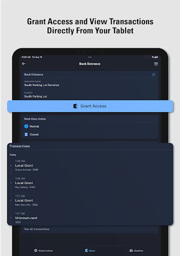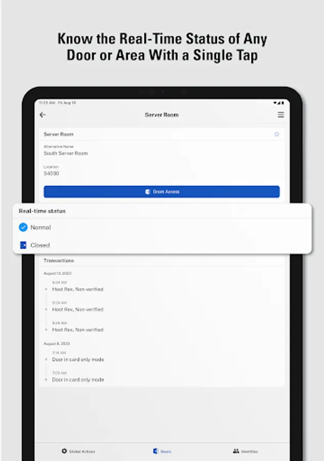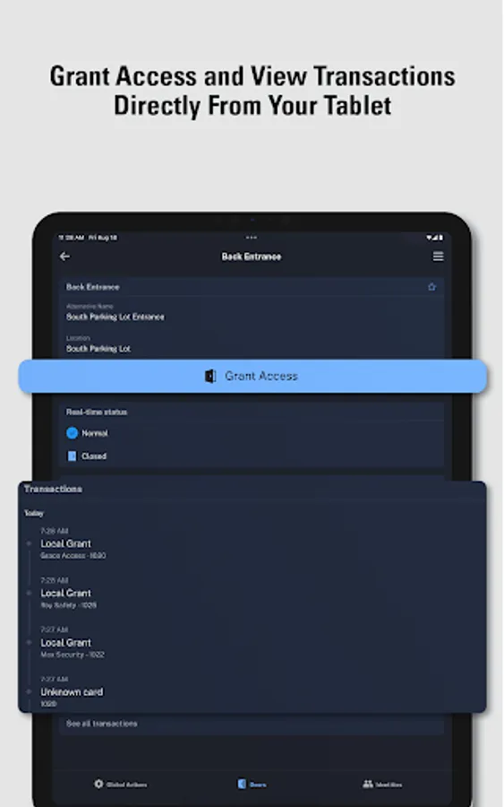 This intuitive app allows users to swiftly perform daily operations and respond to critical events while on the go. Simply tap to grant access, trigger a sitewide lockdown, understand real-time status and transactions and more.