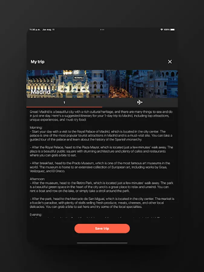 Gone are the days of scouring the internet for hours on end, trying to figure out what to see and do in a new city. Planify will generate a detailed itinerary for you, complete with must-see sights, hidden gems, and personalized recommendations based on your interests.