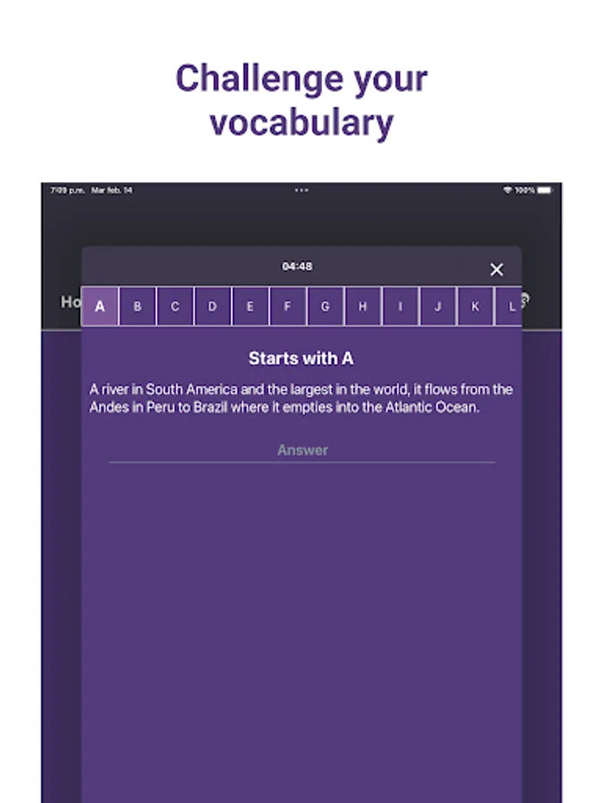 Put your knowledge to the test with Word Hunt, Inspired by the popular TV show! This exciting trivia app is the perfect way to challenge yourself and test your wits. With a wide range of categories, from history and geography to pop culture and entertainment, there's something for everyone. The colorful, user-friendly interface makes it easy to play on-the-go. You'll never run out of new questions to answer. Whether you're a trivia master or just looking for a fun way to pass the time, Word Hunt is the perfect app for you. So why wait? Download now and see how far you can go!