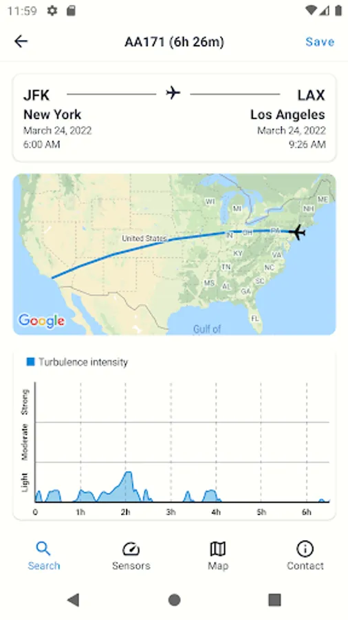 Our app sources publicly available data from the National Oceanic and Atmospheric Administration (NOAA). We apply our own algorithm to calculate turbulence levels for your specific flight.