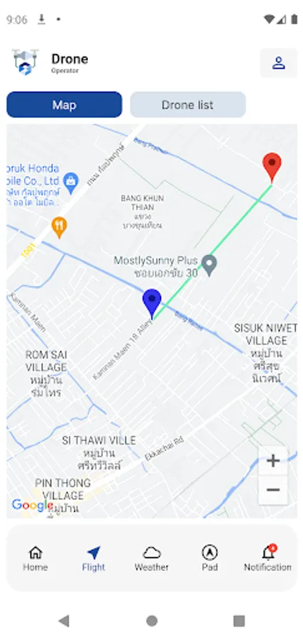 Drone operator can real-time tracking user's operated drone and show on the in-app map.