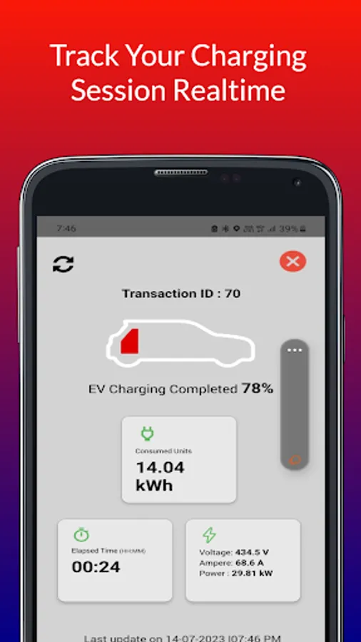 Scan unique QR Code of connector gun, authenticate Charging Session with OTP displayed in mobile app or RFID card to start & end Charging Session. You can check Status of Live Charging Session on mobile app itself. Get notified when charging in completed or in case of any failure.