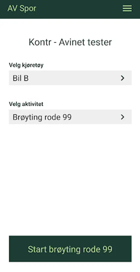 AV Spor is a mobile app for logging positions, vehicles and activity. It can be used by organizations together with the map solution Avinet Adaptive to monitor and visualize ongoing and historical activities.