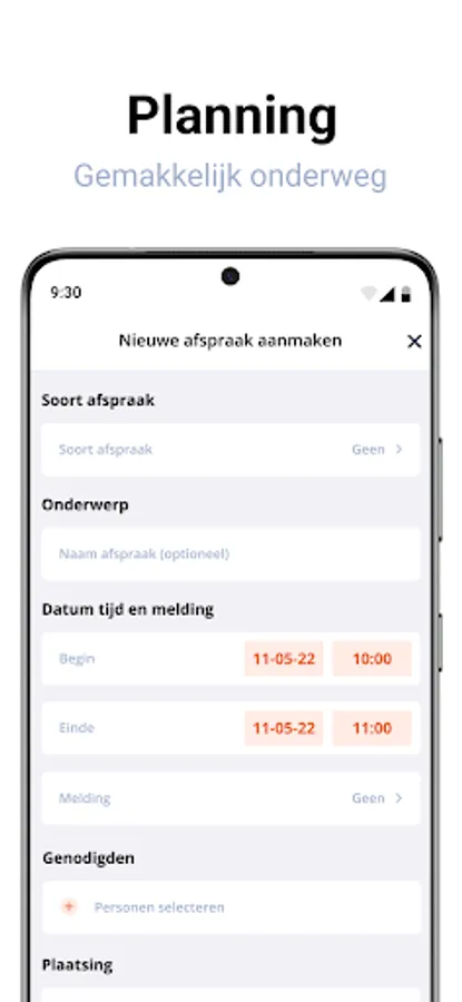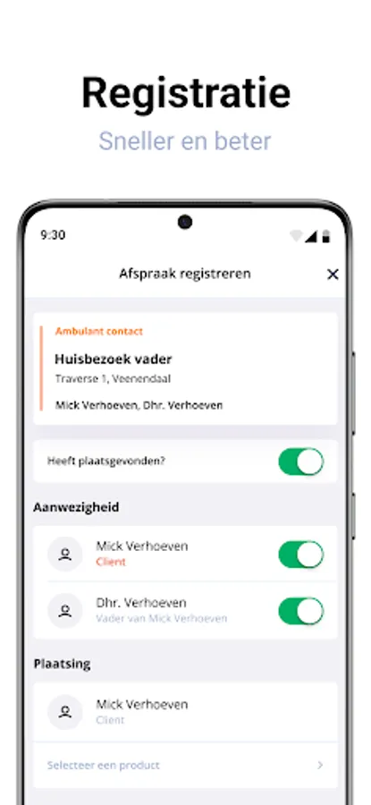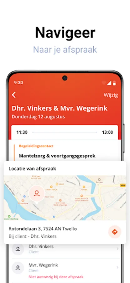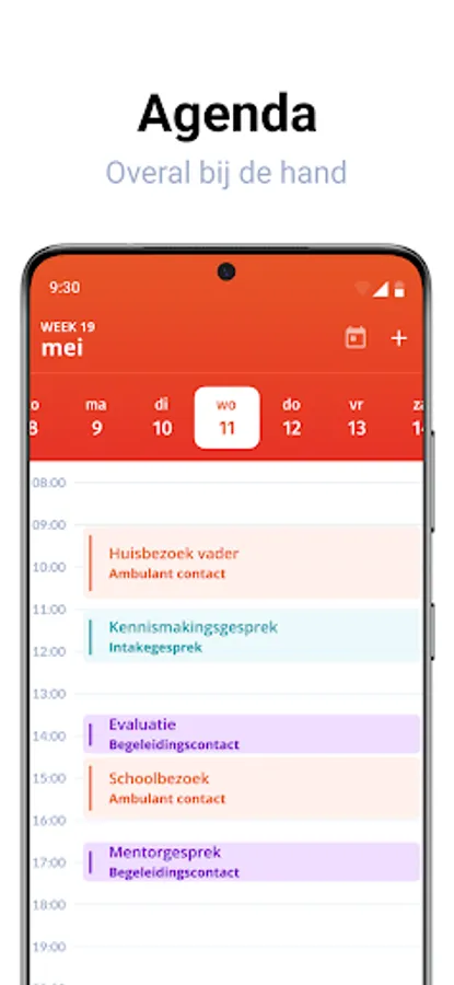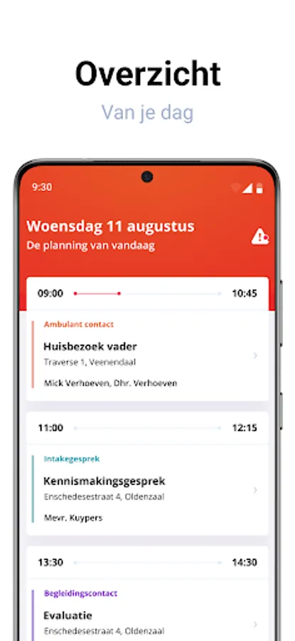Whether it concerns insight into your agenda, voice reporting, pre-filled registrations or navigating to clients, everything is provided.
