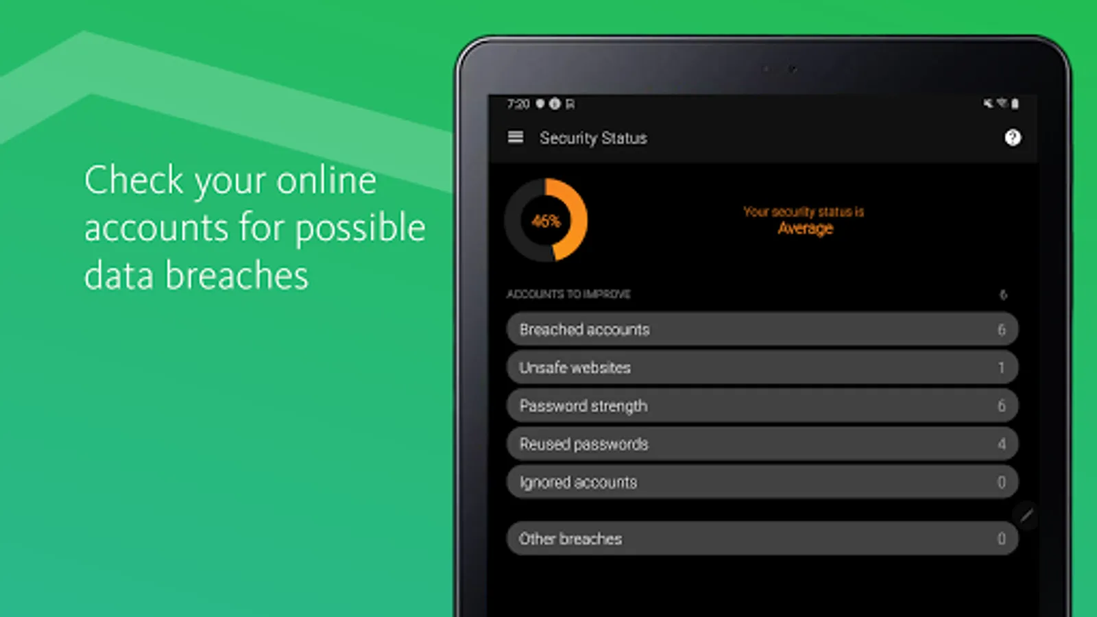 The new Security Status feature shows you at a glance how secure your passwords, accounts, and listed websites are, and whether any of your credentials have already been compromised. You can then take immediate action to improve your online security.