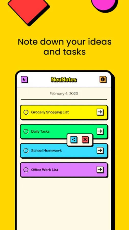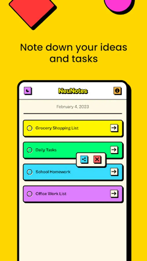 ✏️ Editing and deleting notes is just as simple, so you can easily make changes or delete old notes that are no longer needed. And if you want to share a note with someone else, our app lets you easily share it using third-party applications.