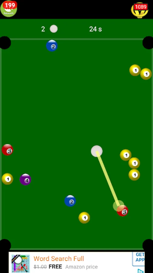 This is a twist on the classic pool game that is fast, extremely simple and lots of fun to play. No complicated setting up the cue etc, just point and shoot. The farther you touch from the white ball the faster the white ball moves in that direction. Also, you don't have to necessarily wait for the white ball to stop, you can shoot while the balls are moving ! It just adds a new level of excitement to game play.