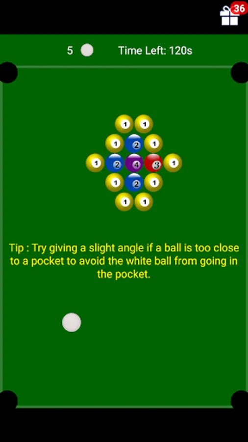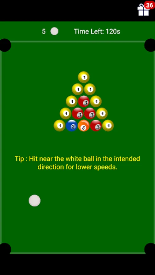 Okay, so here is how you play - you have 15 numbered balls and 1 white ball. You have to hit the numbered balls with the white ball so that the numbered balls fall in the pockets at the corners of the table. If the white ball goes in the pocket, it is game over. You get 5 free shots at the beginning of the game an additional shot for every ball you pocket. Also, you have just two minutes to pocket all the balls. We told you - this game moves fast !