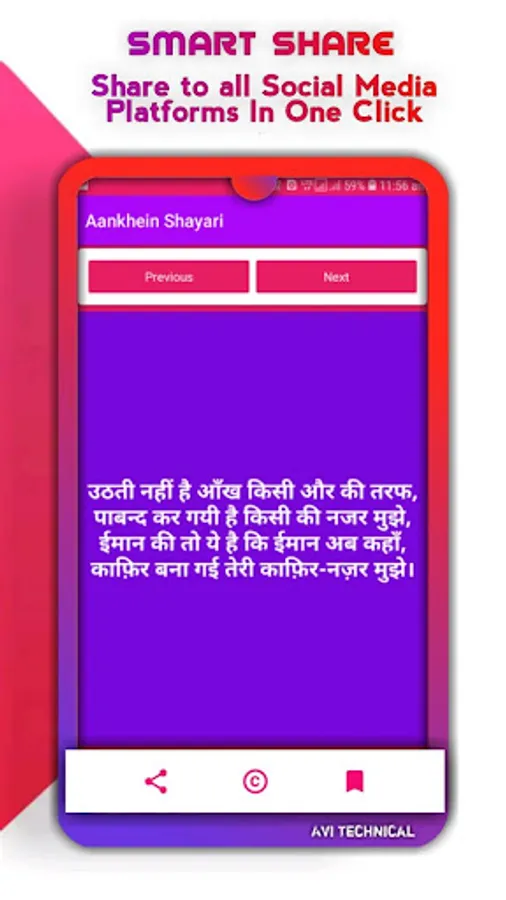 Very easy to use interface just next and previous to read the best love shayari in Hindi and easy share to your friends & family