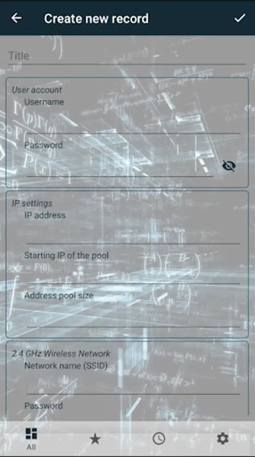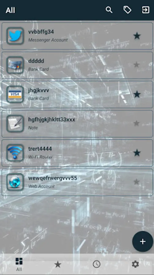 This application is designed to store data for mail accounts, instant messengers, websites, bank cards, passports, WI-FI points and notes. The data is encrypted, access to the application is protected by a security code and a fingerprint scanner, if the device supports this service. Authentication via Firebase Auth. There is also a keyboard for entering passwords of Russian content, but in the English layout corresponding to the location of the P.K. keyboards.