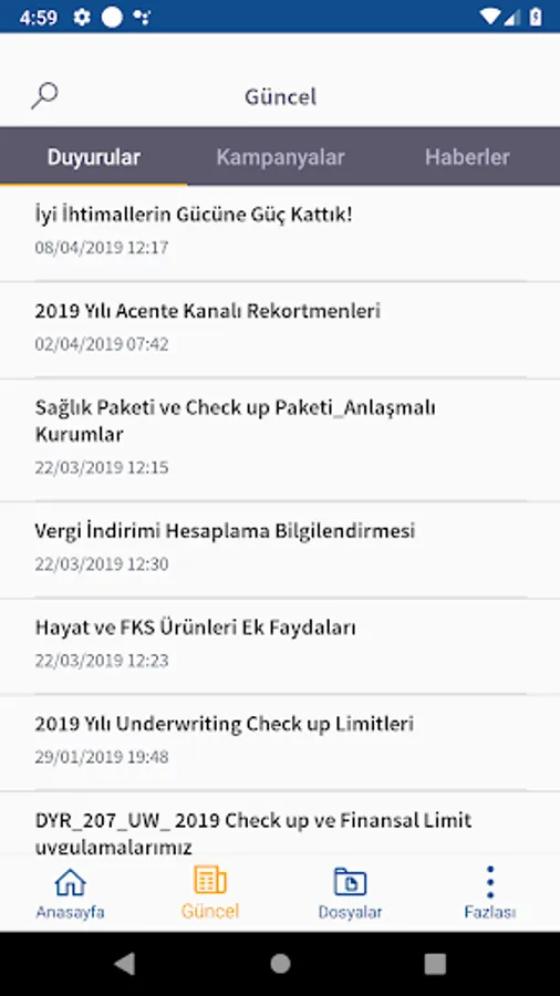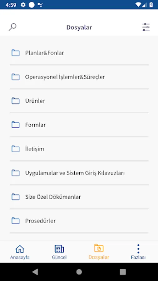 You can access campaigns, announcements and news under the "Updated" heading in the application. From the "Files" section, you can access information and transaction forms, process information documents and guides for all products.