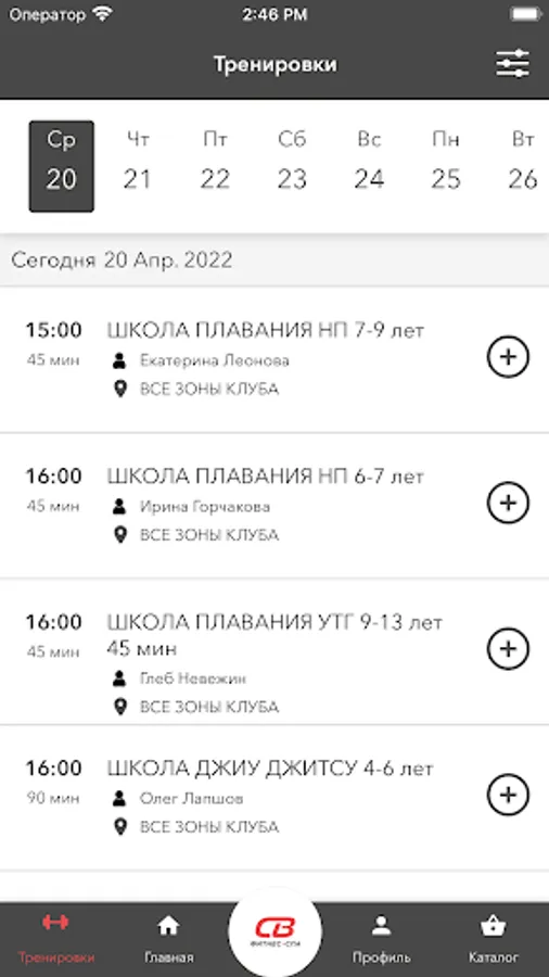 - the current schedule of all classes of the Club Schedule with the ability to record on the website, in social networks and print in Excel