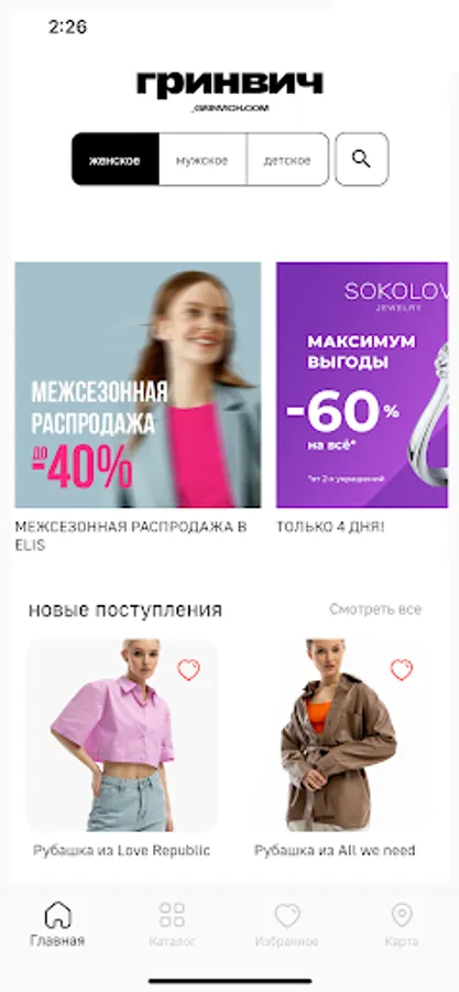 The application contains goods from Greenwich shopping mall stores, as well as selections of bows from professional stylists.