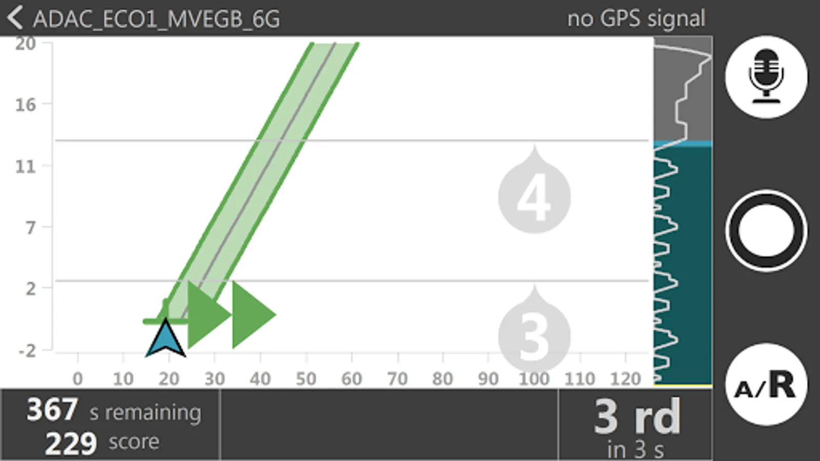 It provides the driver with a graphical display of scheduled and actual vehicle speed, gear shift requirements and also user-defined events. The permitted tolerance for vehicle speed deviations can be displayed and configured with a single touch icon.