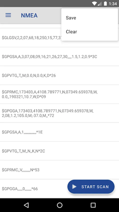 The GPS log of NMEA sentences can be saved for further analysis.