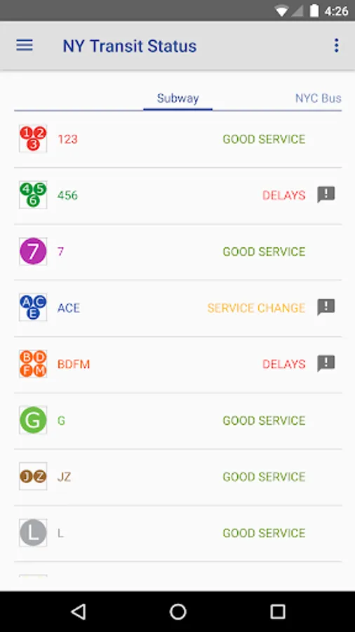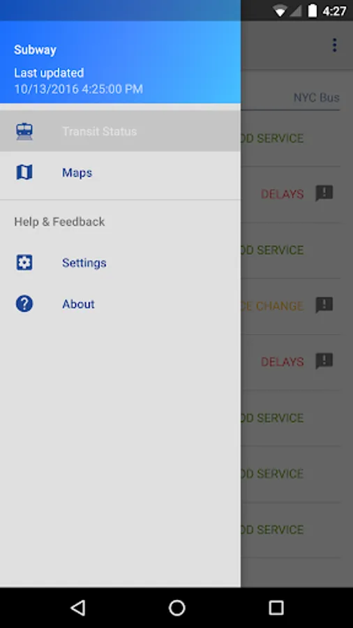 NY Transit Status features simple and intuitive navigation, an array of supported transit agencies, transit maps.