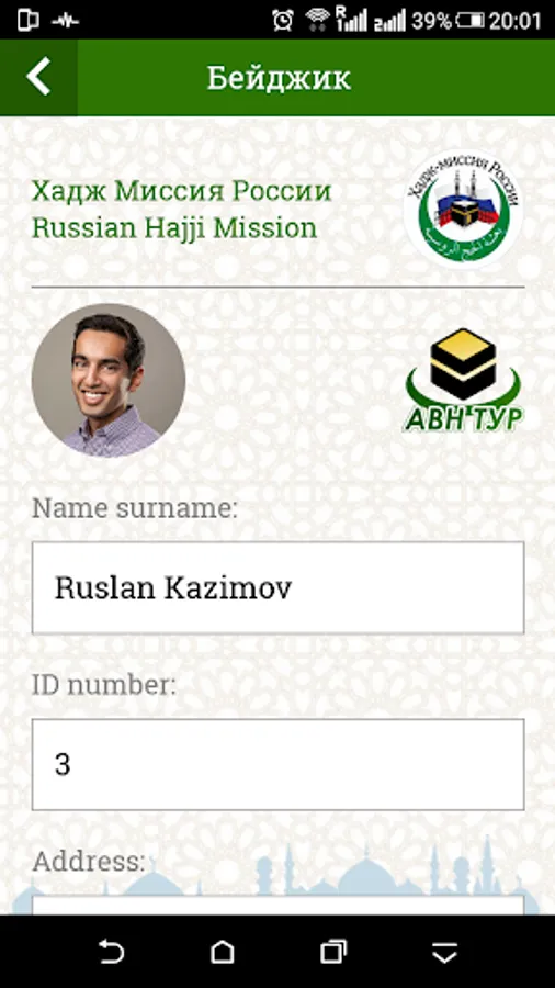 Special application designed hajj operator "AVN-TOUR" for pilgrims traveling to Hajj in Mecca and Medina, Kingdom of Saudi Arabia.