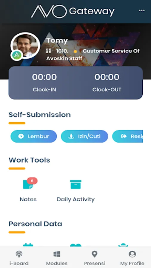 AVO Gateway merupakan aplikasi yang mendukung berbagai aktivitas Human Resource. Aplikasi ini membantu perusahaan dalam mengatur berbagai aktivitas karyawan mulai dari kegiatan presensi, pengajuan izin atau cuti, dan pengajuan lembur.