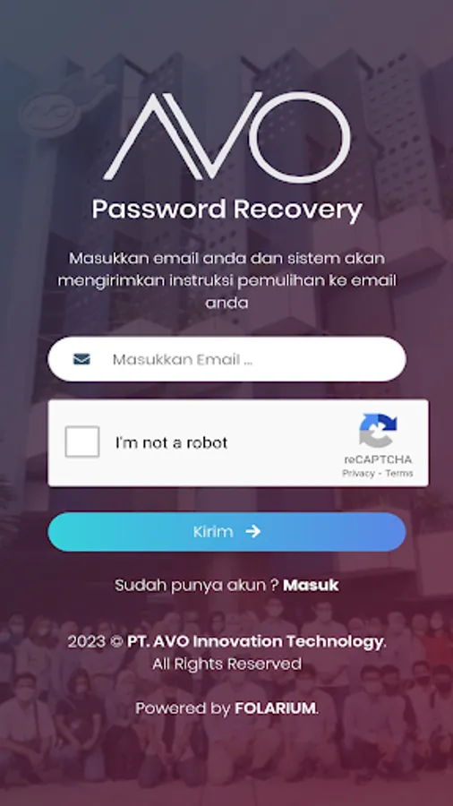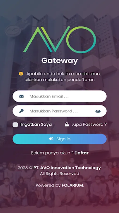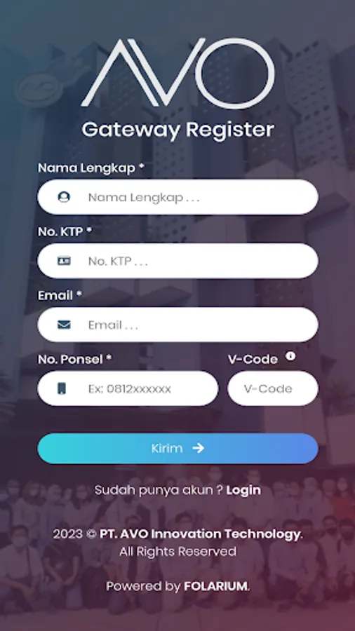 Untuk menggunakan aplikasi AVO Gateway, Anda perlu menghubungi PT AVO Innovation & Technology untuk mendapatkan code registrasi.