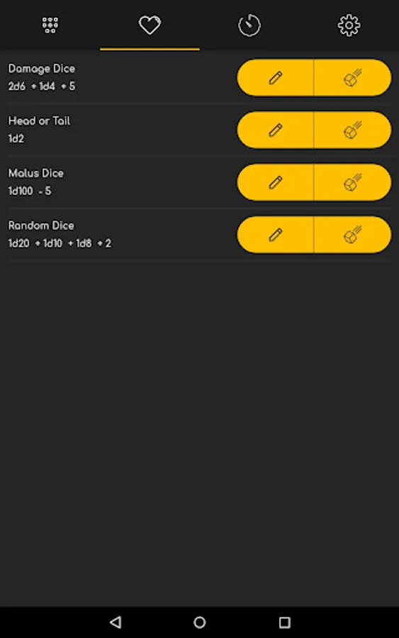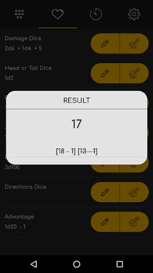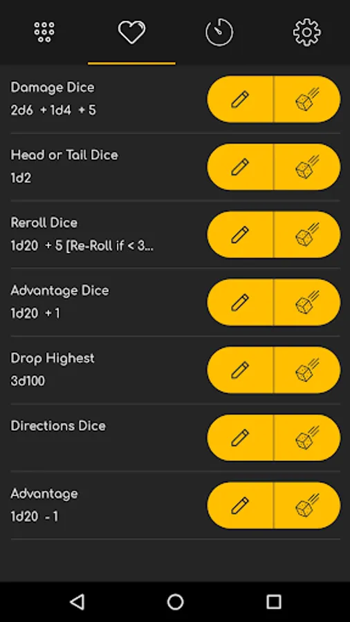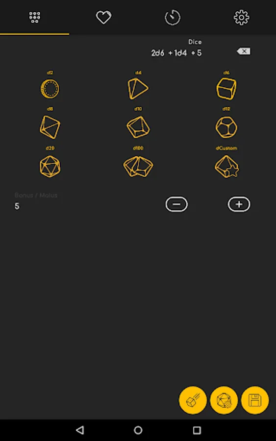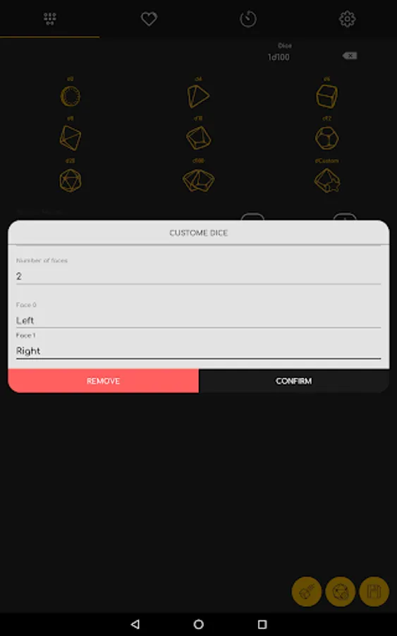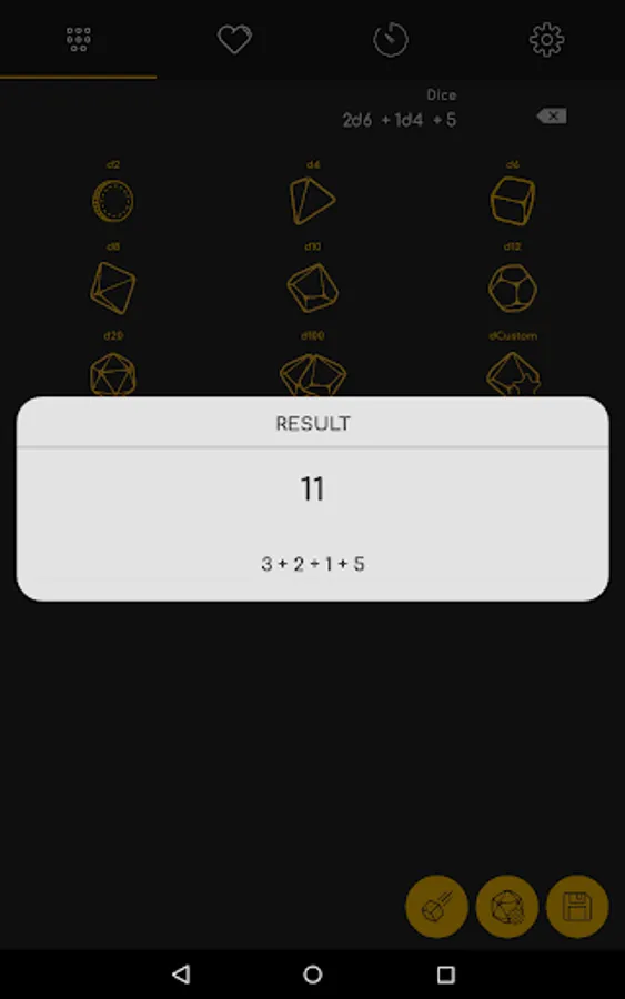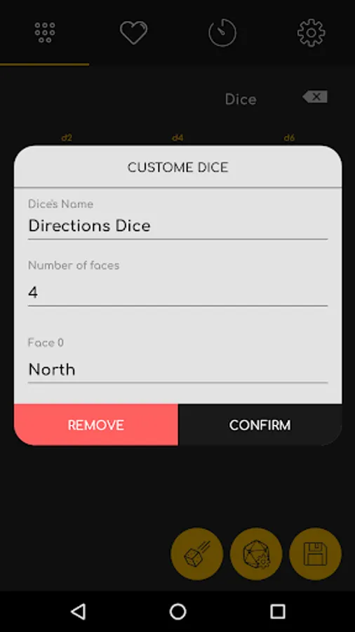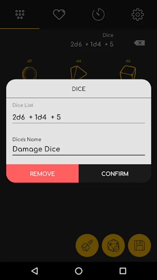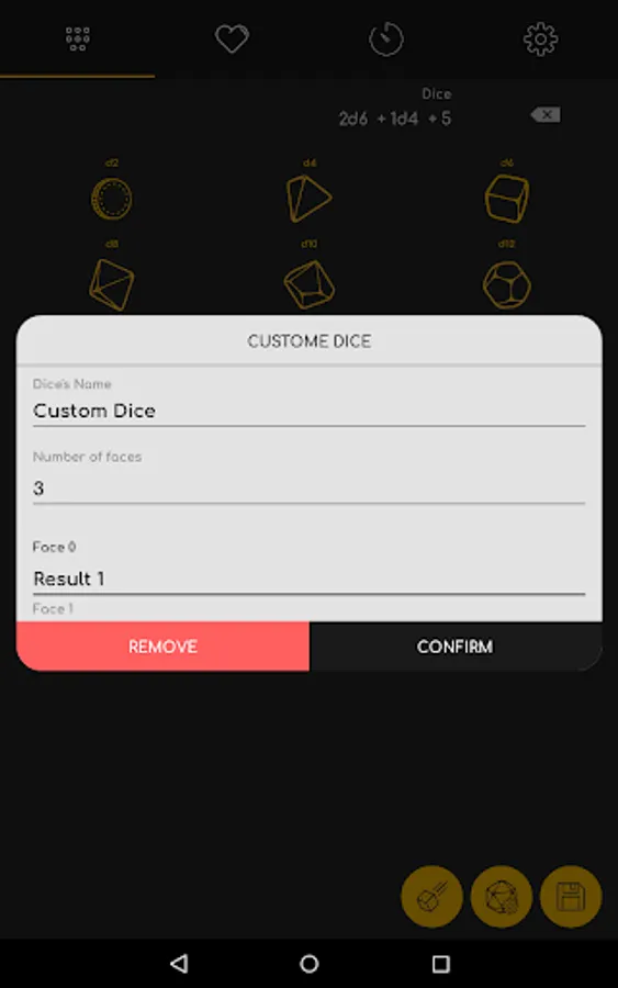You can also save your favorite or more frequent dice with name to recognize them later.