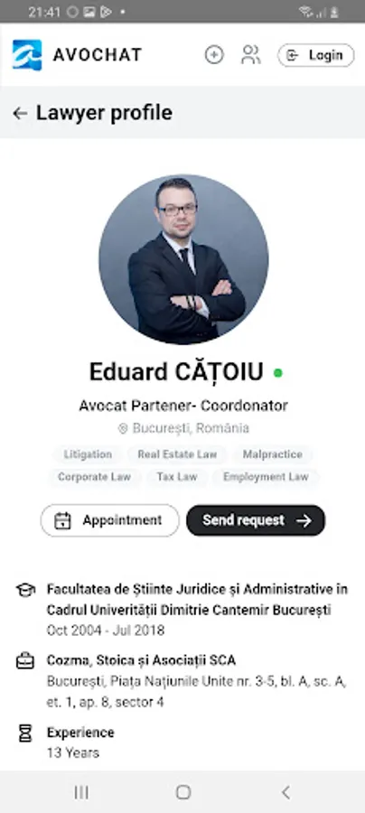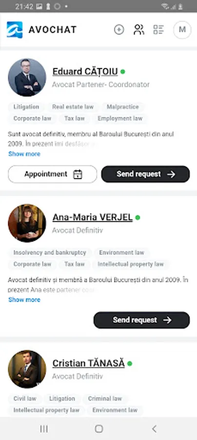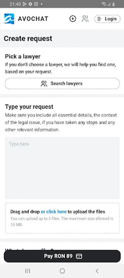 Avochat is an application that facilitates the interaction between those who need legal advice and specialized lawyers, thus providing easy and fast access to professionals, from the comfort of your own home or wherever you are.