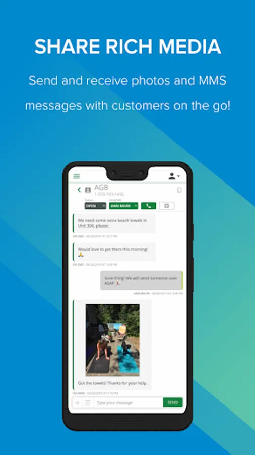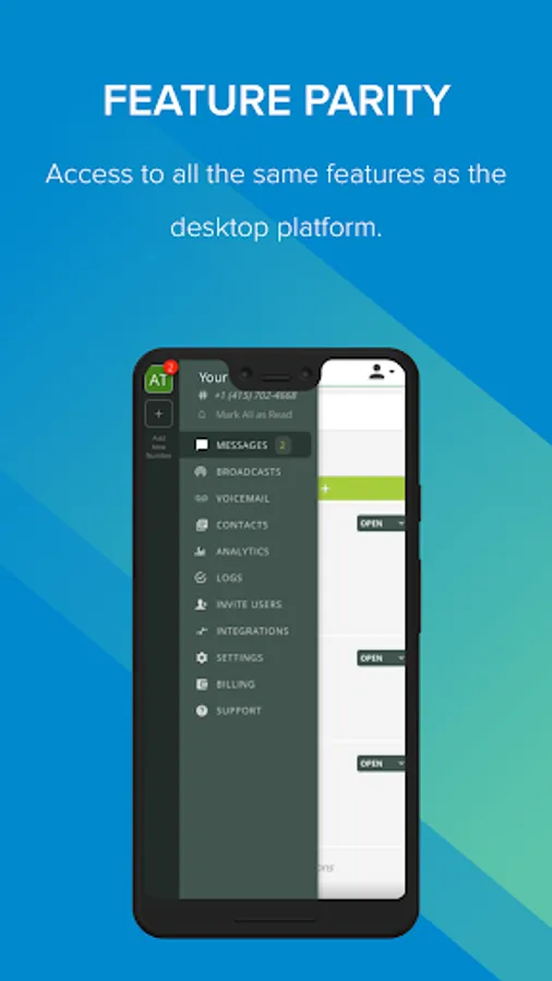 Avochato for Android unlocks the power of text messaging for support, operations, and sales. Create an SMS support line in seconds. Stay in touch with employees in the field. Drive sales by letting customers text message you from an online ad. And more.