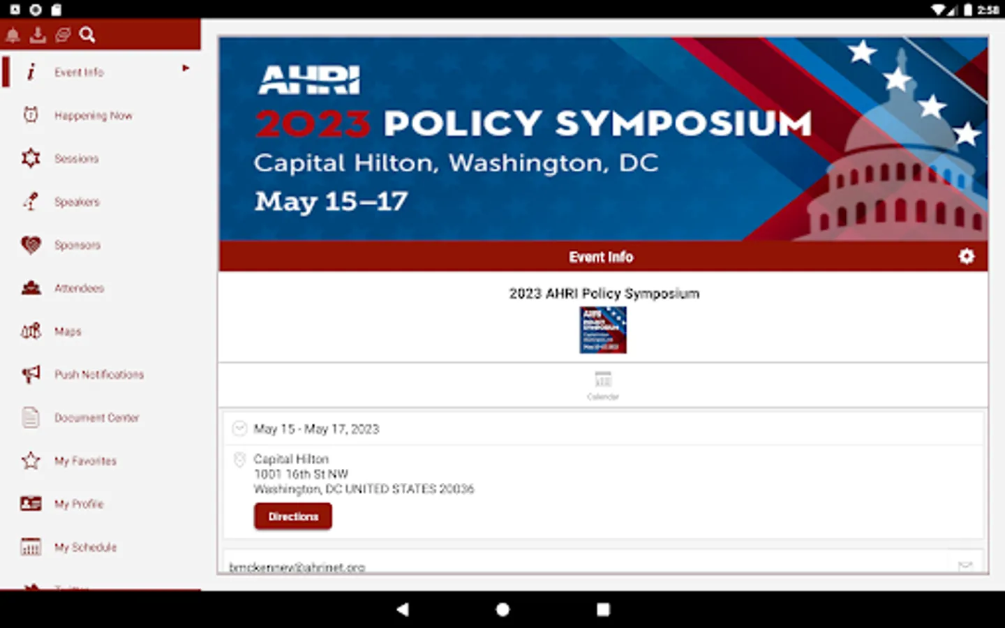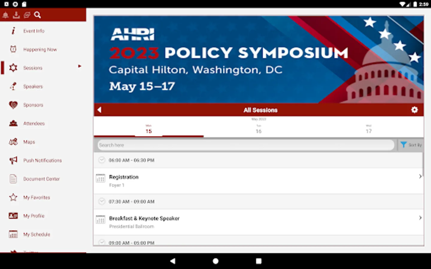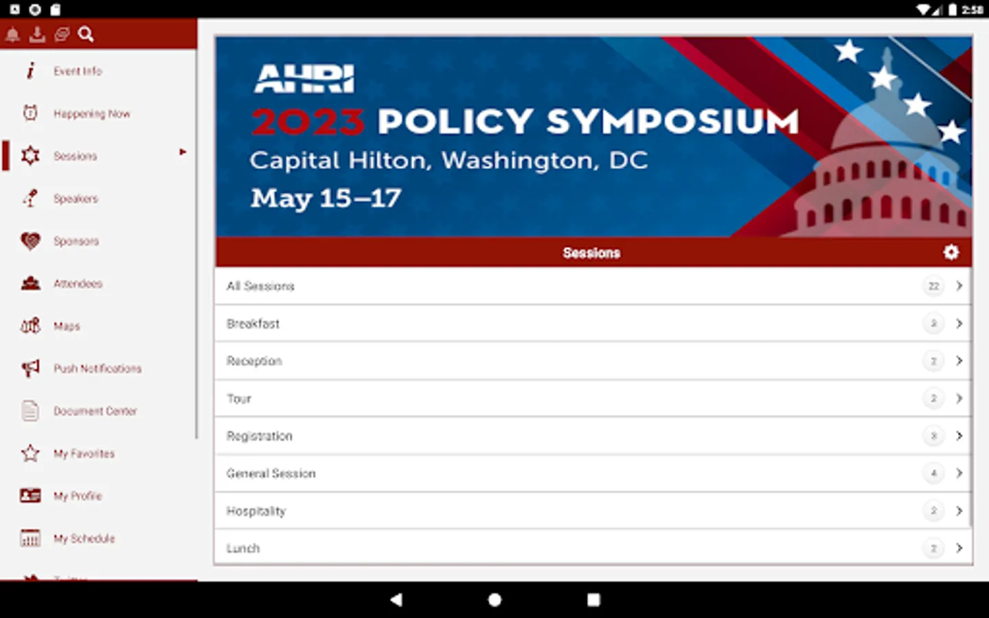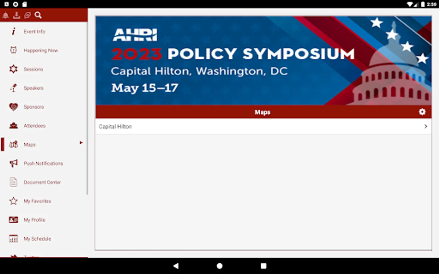 Welcome to AHRI's mobile app, designed to enhance your experience at AHRI's three annual events. Using your smartphone, you can now access meeting schedules, maps, information about speakers, the attendee list, open session agendas, and other resources. The interactive features of the app allow you to connect with attendees at the meetings and share photos of your experiences. AHRI members will also receive login information to access executive session agendas. This app is highly customizable so you can make the most of our meetings. Download the app for free today. Please note that every effort has been made to include as much data as possible in the app so that it can be used while offline and abroad. Some features do use life data and may incur charges depending on your carrier and plan.
