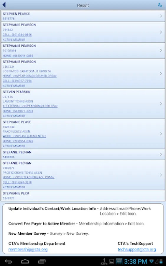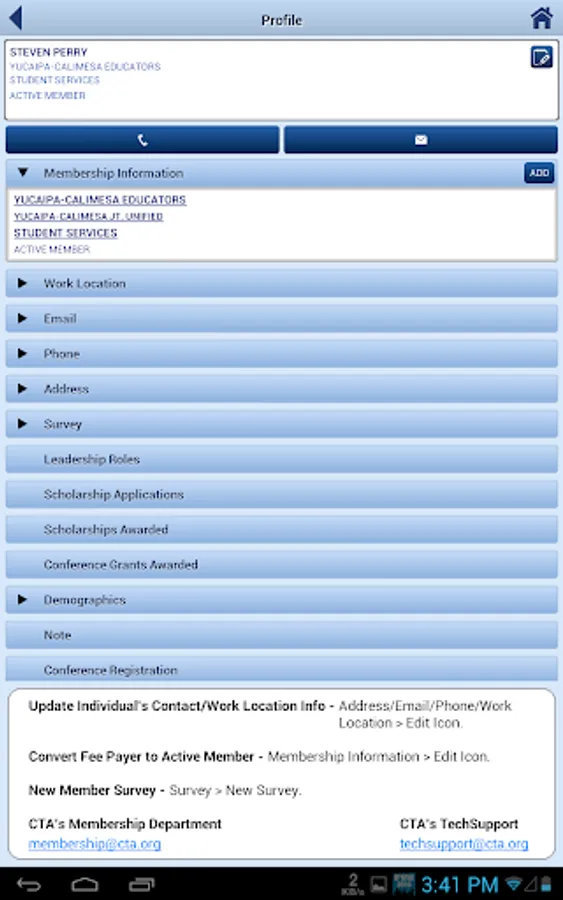 Mobile Falcon provides a 360 degree view for CTA staff and leaders of the Falcon database. Search and find key fields and participation for individuals and organizations throughout the state. Link directly to individuals and organizations. Staff and leaders can update core data fields via the app. The app also features a CTA news feed, notes section and committee lookup.
