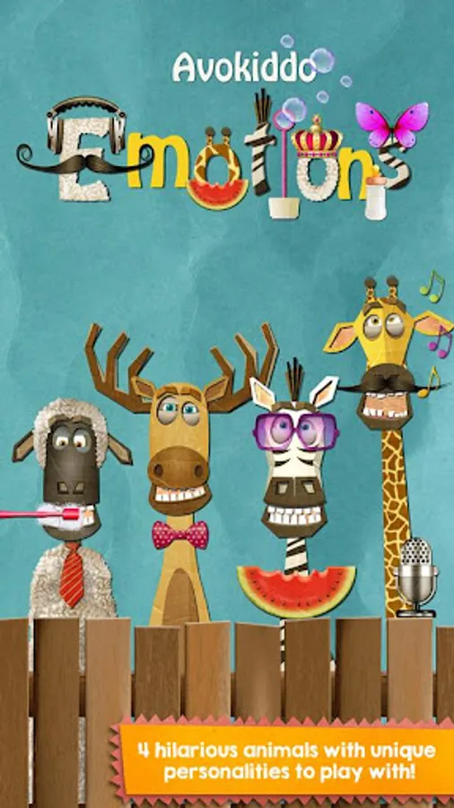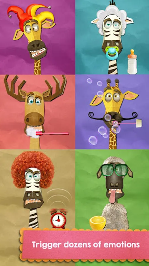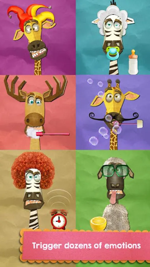 • 4 hilarious animals to play with: zebra, sheep, giraffe, moose
