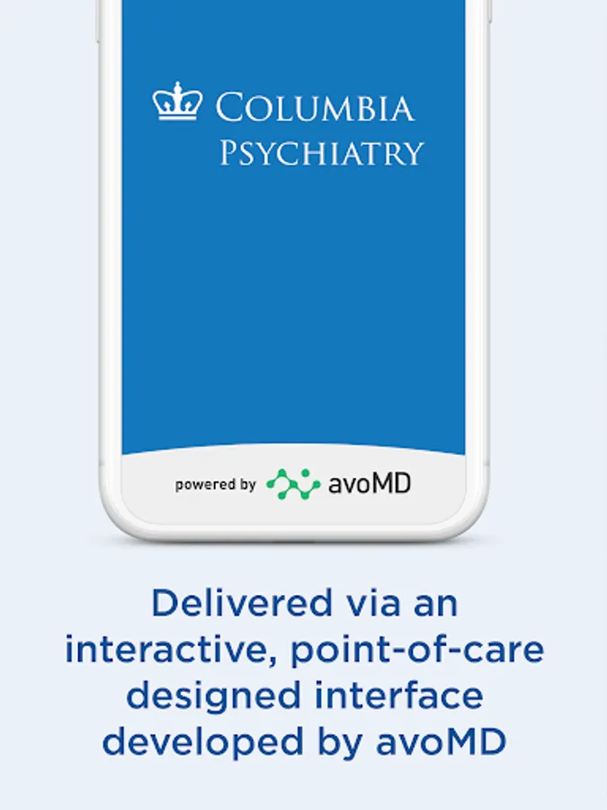 • Designed by experts from Columbia’s Department of Psychiatry and delivered via avoMD’s next gen decision support technology