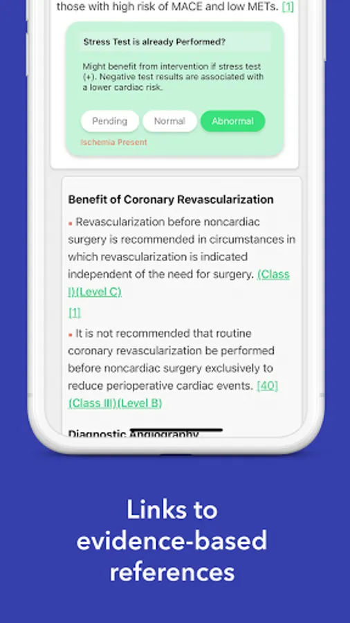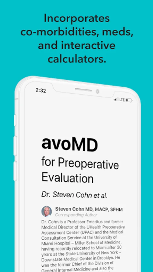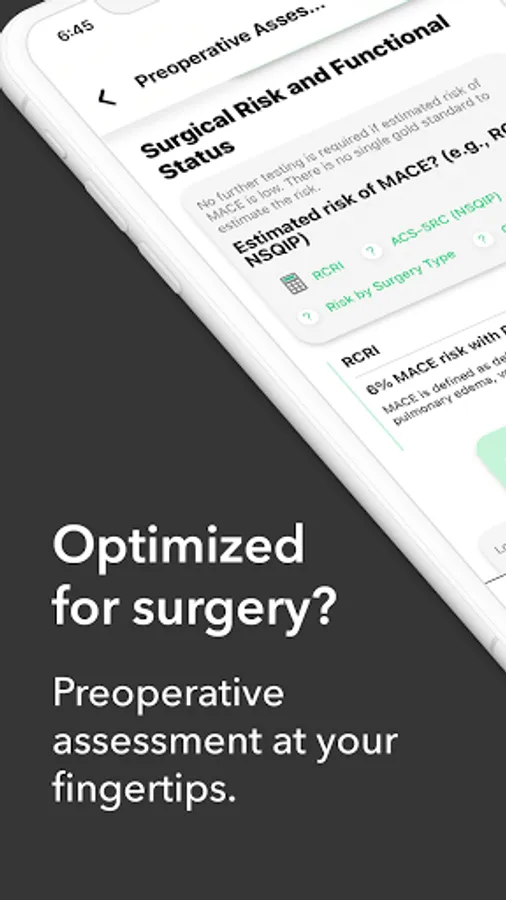 avoMD: Preoperative Eval provides quick, interactive, and educational guidance to help clinicians evaluate and prepare adult patients for noncardiac surgery. The app is based primarily on the 2014 ACC/AHA Perioperative Guidelines but also includes additional comments from reviews of the literature up to September 2020. It was developed in conjunction with Dr. Steven Cohn, a leading expert in Perioperative Medicine.