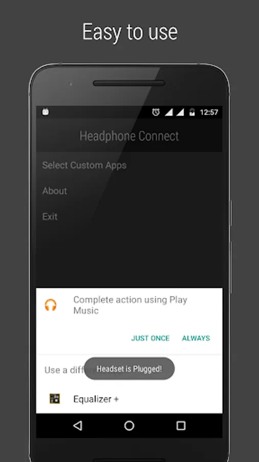 This app is based on a simple idea. Whenever you are in a hurry, or on a signal all you want is to plug the headphones and find out the music player through bunch of other apps, it's pretty annoying. So here comes the solution. Just plug in the headphones and it launches the list of all the music apps which makes it so easy to open the app in just one-click! Or if an app is set as default music player, you don't even need to do that one-click, so simple. This app is currently under build, this is a prototype version, future updates will surely make the app more smooth and more reliable, and I'm working hard for it.
