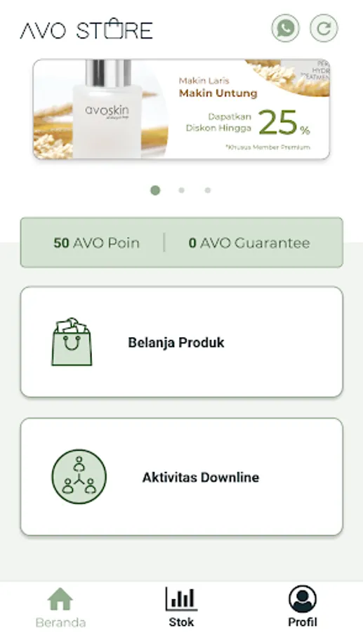 Enjoy the convenience of transacting Avoskin products by using the Avo Store application. Download this application and make sure you are registered as an official reseller of Avoskin. Fill in your personal data completely so that you can make a product purchase transaction, both to the Avoskin center and to fellow resellers. Use the Avo Store App as a reference for sales progress and a certain level to be achieved