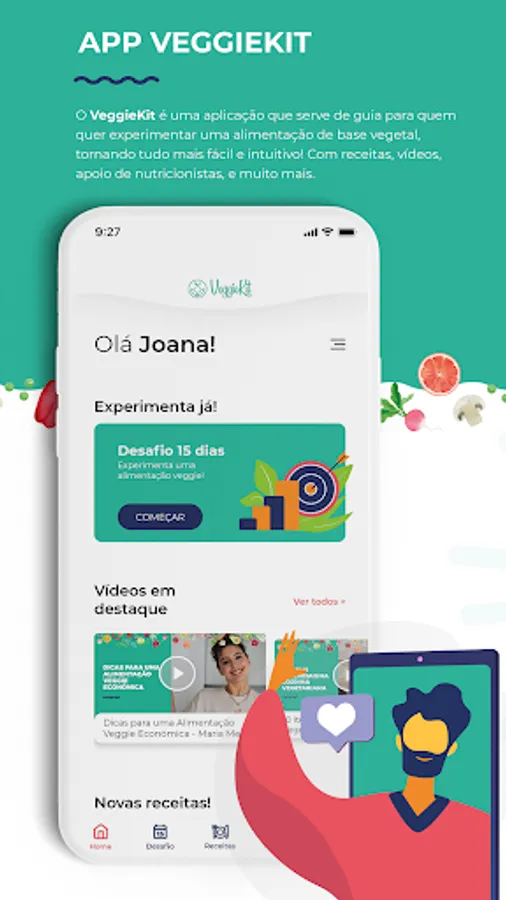 The VeggieKit APP is an application that serves as a guide for those who want to try a plant-based diet, making everything easier and more intuitive! With access to a 15-day guided challenge, recipes, an interactive quiz, support from nutritionists, and much more, all for free!