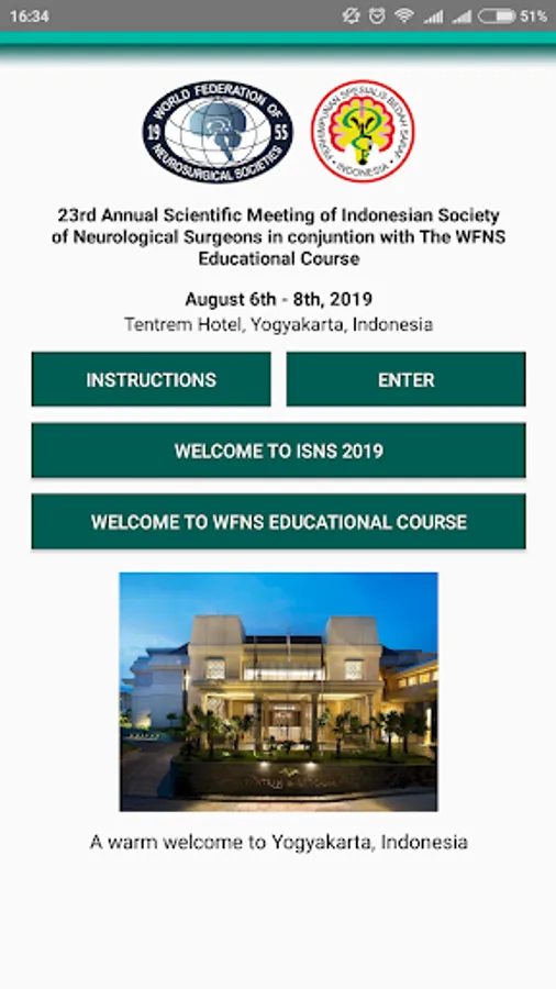 This is the new delegate app for The 23rd Annual Scientific Meeting Indonesian Society of Neurological Surgeon (ISNS) in conjunction with The WFNS Education Course. This meeting will be held Tentrem Hotel, Yogyakarta, Indonesia, from August 6th to 8th, 2019
