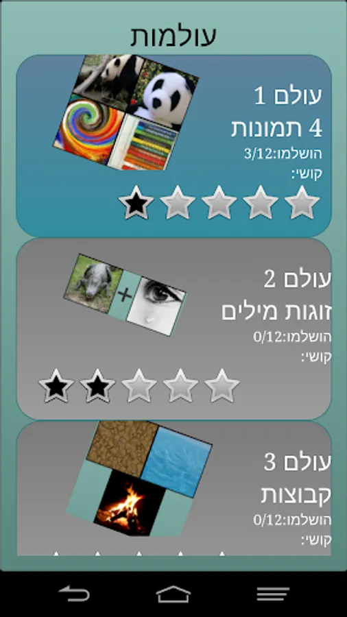 The game is suitable for all ages and is divided into the different difficulty levels